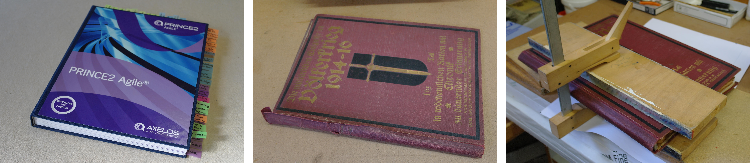 Die kostengünstige Variante ist fast immer ein neuer Buchdeckel-Einband. Wir binden den Einband neu, reparieren beschädigten Seiten, oder versehen den Schutzumschlag mit einer Schutzfolie.